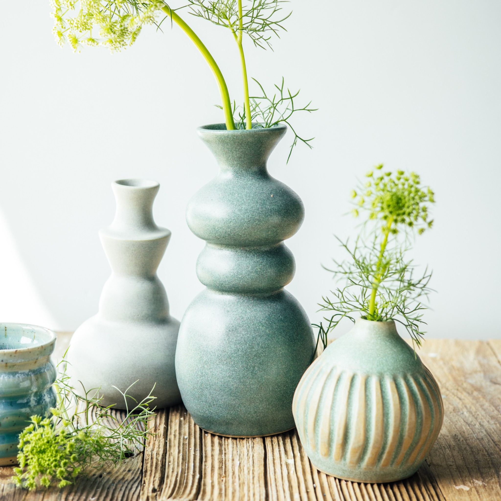 - Smalto in gres dai colori intensi, opaco e setoso, con delicate sfumature verde-blu-grigio.